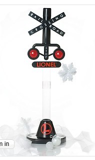 The Lionel Railroad Crossing Coin Bank is a 4 feet tall coin bank. Put in a coin and flashing lights and whistle sounds will come on (for 30 seconds). You can choose to have (1) the lights on but no sound, or (2) both lights and sound, or (3) neither lights nor sound.To see it in action, see Dick's video on MySpace.