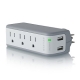 The travel-size Belkin Mini Surge Protector converts one outlet into three AC plugs and two USB char...
